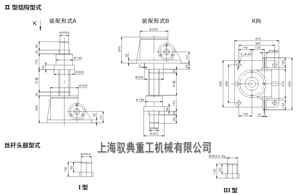 在確定好承載,確定需要選擇這款型號之后,首先我們要確定的是結構形式,我們需要I型(絲桿升降)還是II型(螺母升降);其次要確定好裝備形式,絲桿在上面,還是在下面;確定好這些之后,還要選擇速比:1/8、1/32;如果1/32速度還是快了,那就要另外配置減速機了,常用的配置減速機種類是RV蝸輪蝸桿減速機。至于行程,是根據客戶需要定制了,您需要多少,把尺寸告訴我們就可以了。